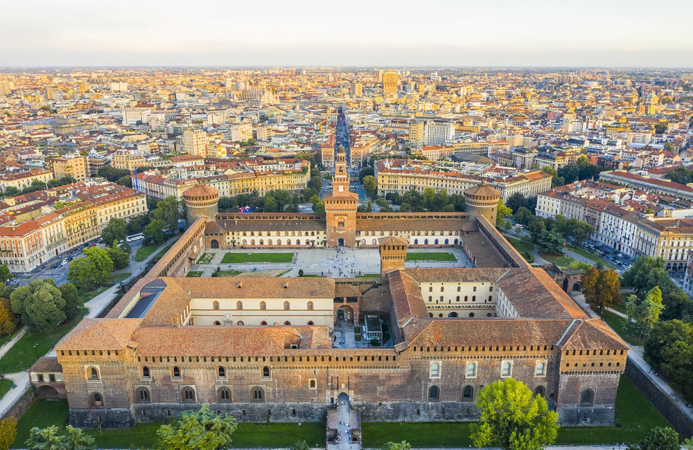 A defensive fortress in the 15th century, Sforza Castle is today the place to admire numerous artistic masterpieces, from the Rondanini Pietà to Leonardo's frescoes, and spend moments relaxing in the courtyards within the walls.